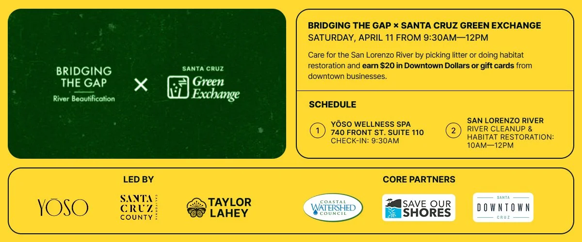 Bridging the Gap x Santa Cruz Green Exchange Saturday, April 11, 2026 9:30 AM 12:00 PM Google Calendar ICS